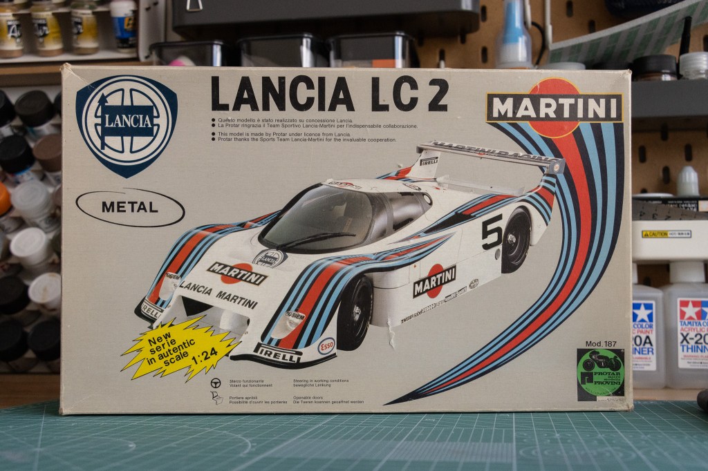 However, I assume there is common sense that the quality of European kits is usually in no way near to their Asian counterparts, like what you can get from the big-4 from the land of the rising sun. The exception is Italeri from Italy. Italeri nowadays are like Trumpeter from China; their past kits were always hit and miss, but the quality of their products is getting better over the years, and so are their expanding production lines. Trumpeter has released numerous big, fabulous 1/16 kits (needs lots of effort for sure), and the new 1/12 Lancia Delta from I Italeri is just mouth-watering to me (I got tired from waiting for their supposed 2024-release Lancia Stratos, so I bought an ol’ Doyusha one. Wait for my review on that one!). It was also Italeri who has been reboxing Protar’s work, including the topic of this post – the only early rival of the mighty Porsche 956 – the Lancia LC2!