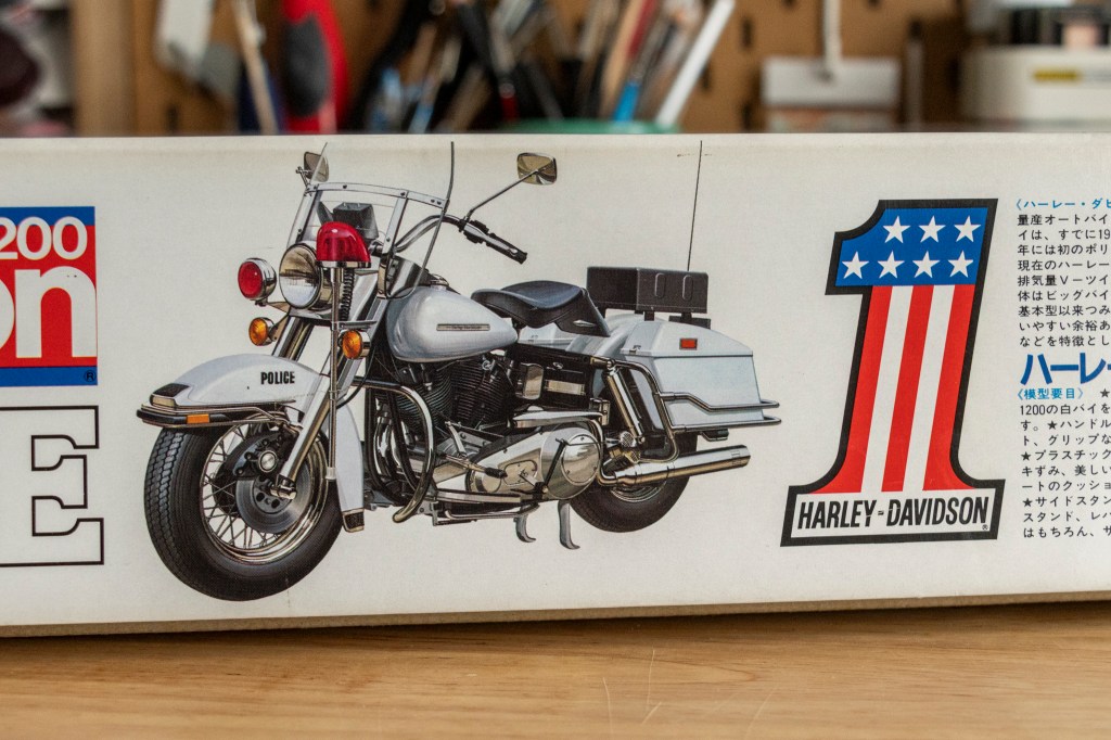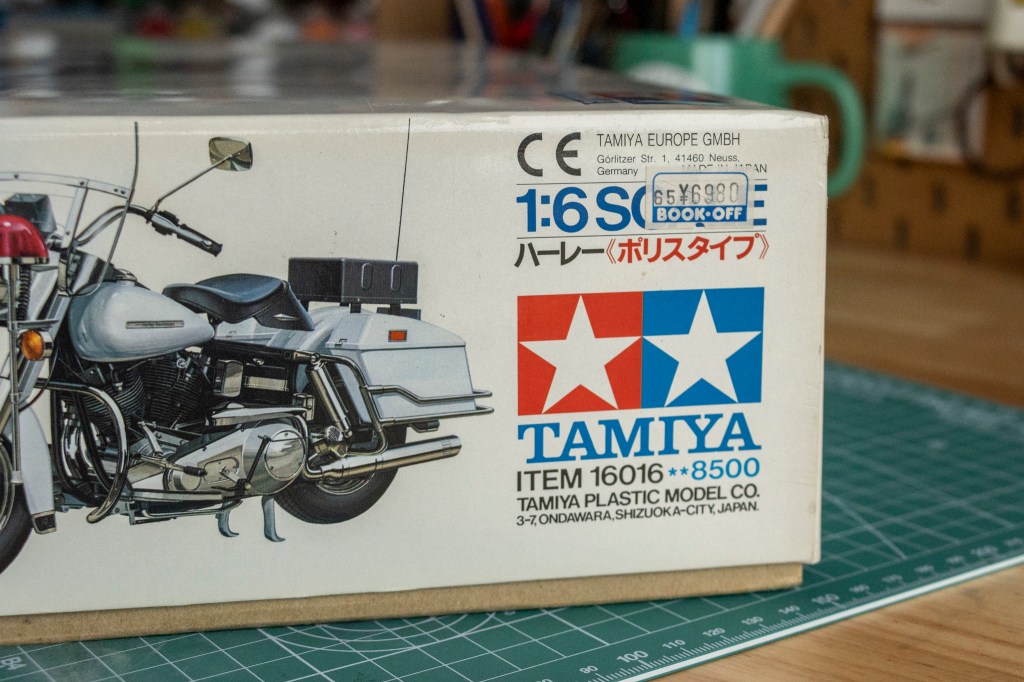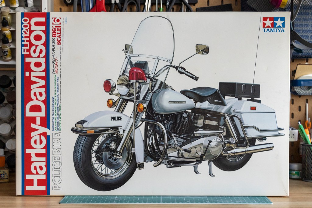 Tamiya’s FLH collection covers 5 different models. Arranged according to the time they were released, first we have the classic FLH1200, still under American Machine and Foundry (AMF), comes with a very classy seat; then comes the Electra Glide in Blue. The bat wing fairing FLH classic follows with a separate version that accompanied by a sidecar, making the already huge 1/6 even bigger (at the moment of writing this post, the sidecar version is on its way to my home, :D). Tamiya then re-released the FLH Classic again but in black (come on, colour difference counts). These box art can all be found on Scalemate. Among them, the original AM F one has become a rare deal since; the other versions can be regular guests at all types of auction sites.