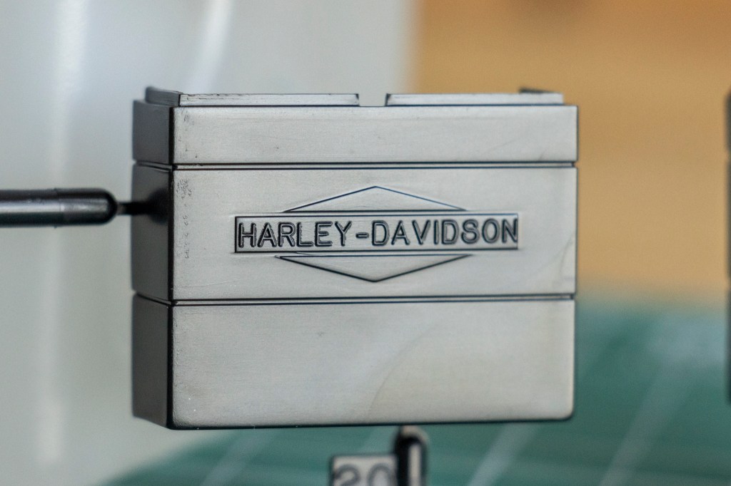 Thanks to the big scale, the pattern on the kickstart pedal really stands out. I learned that even though the biggest thing for the Electra Glide, well, you can tell from the name, was the addition of a electric starter, a traditional kickstart still comes with the bike, just in case.