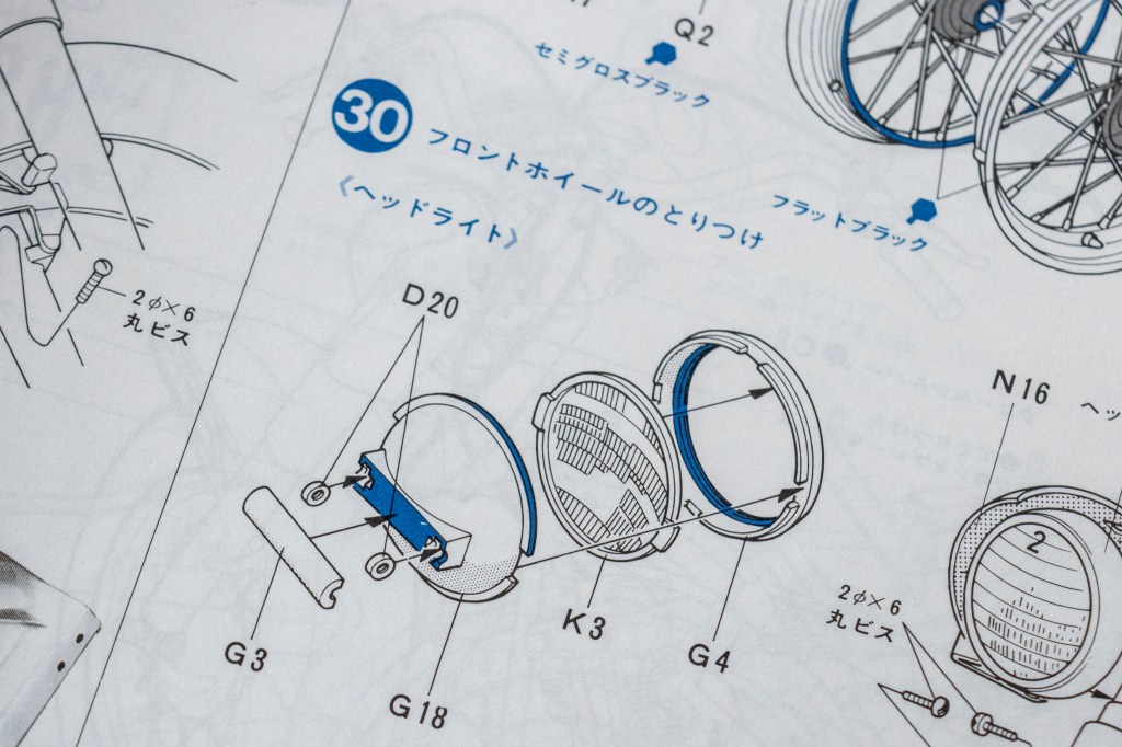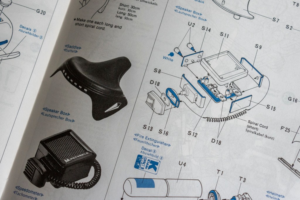 A courtesy of old Tamiya kits—instruction manuals in English and Japanese.