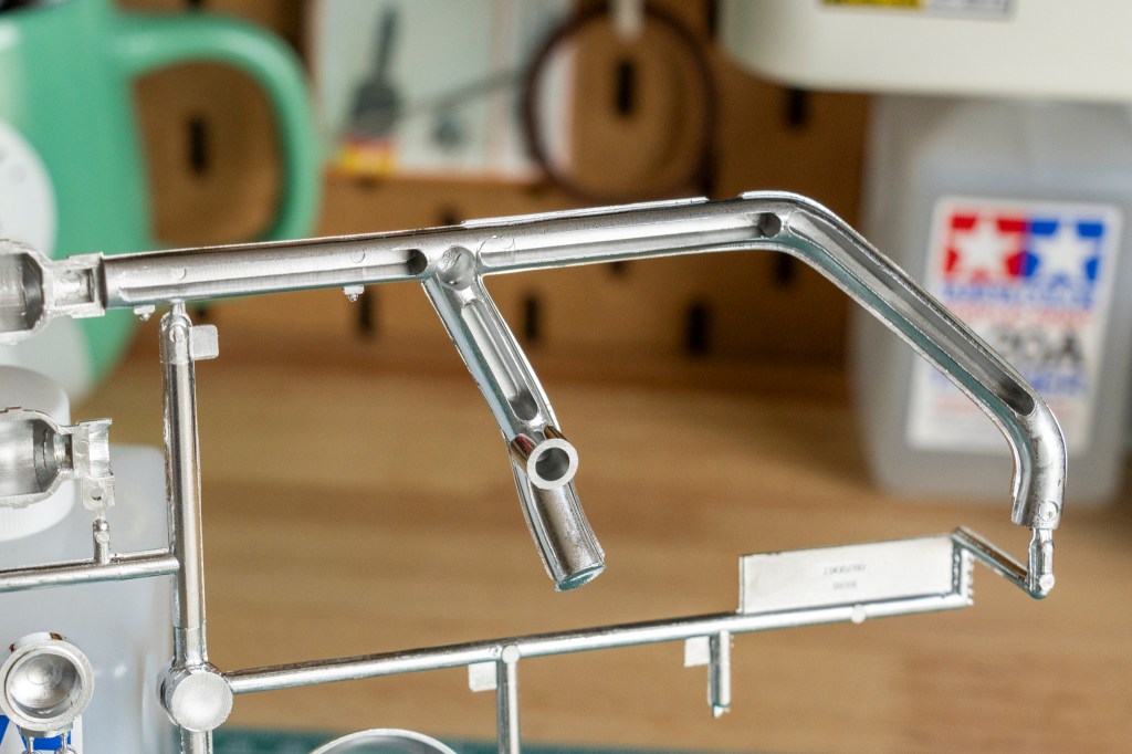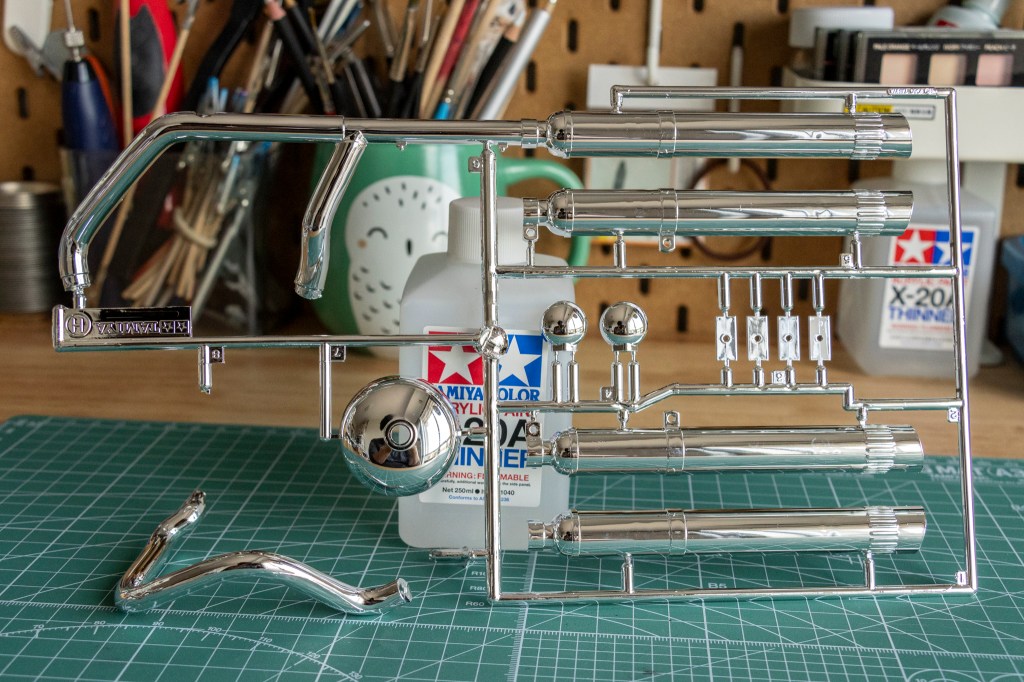 This also means the chrome-plating must be stripped away. Okay, I wanted to weather the exhaust pipes anyway.