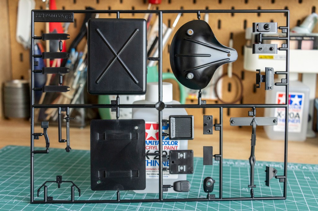 Here comes sprue R, the hard saddlebags! You also get a Japanese plate and an American plate.