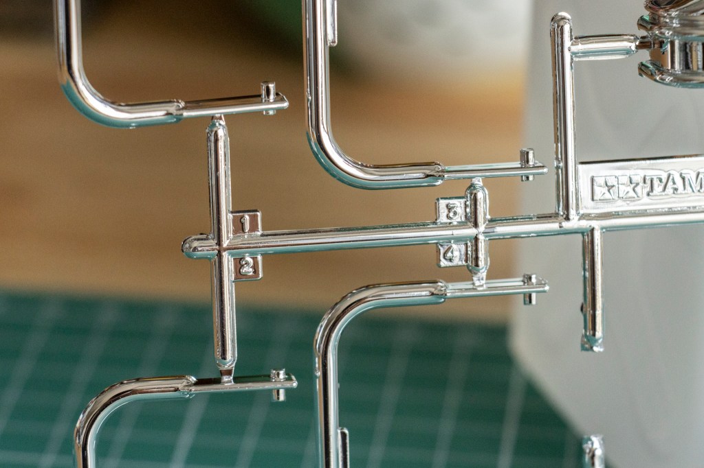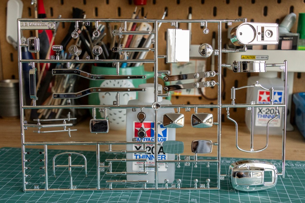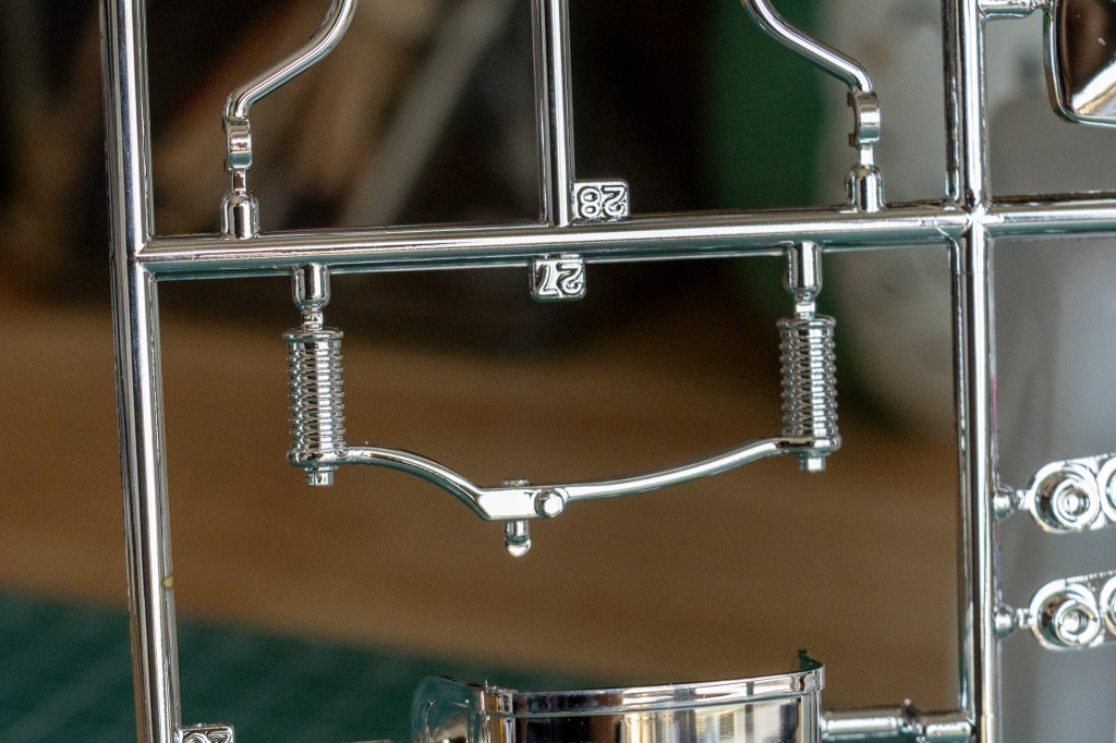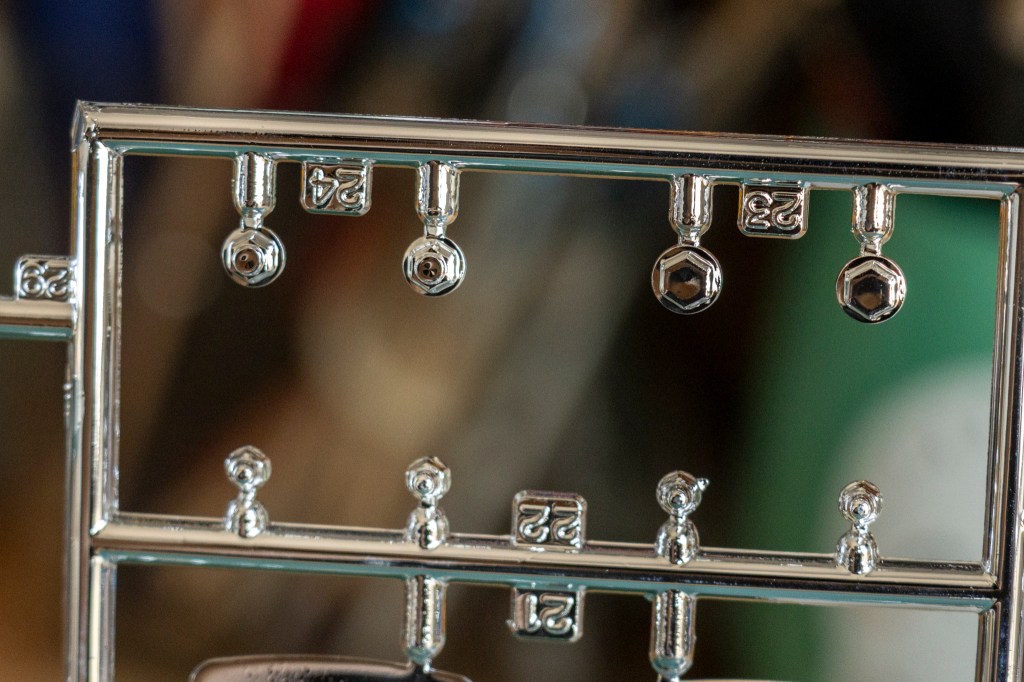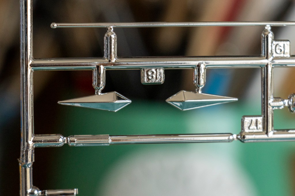 This kit contains a lot of chrome-plated sprues. Here’s the first one, F.