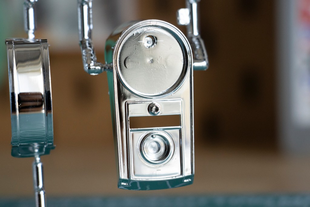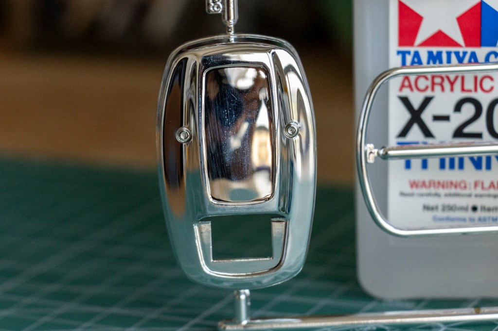 The spots where the gates are placed will be completely covered by other parts, and the imperfection on the central gauge will be covered by decals. My theory is because of the size of the part, the chrome actually looks extremely legit. I won’t strip the factory chrome paint on this one.