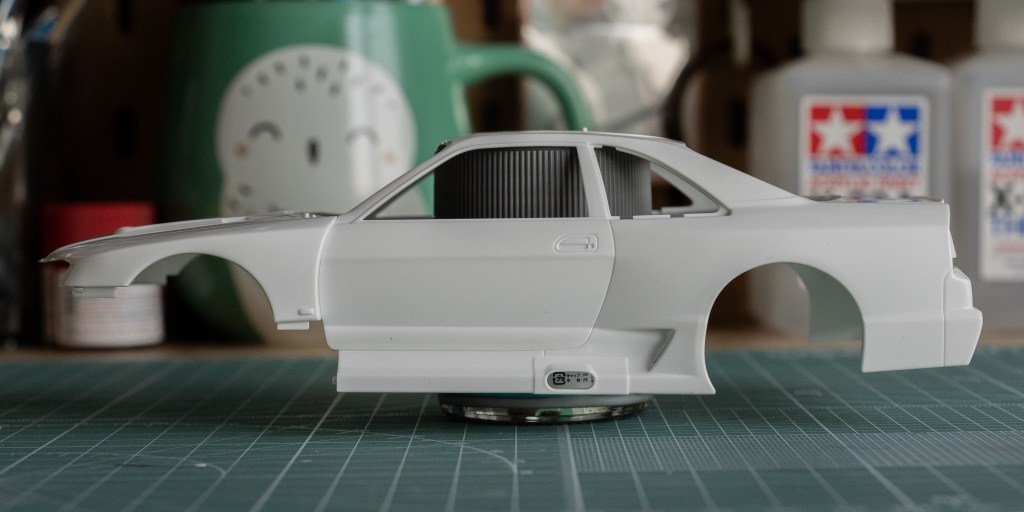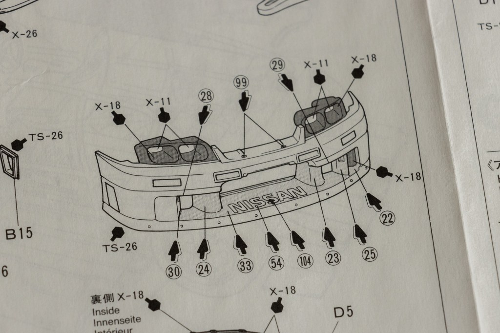 By the way, to maximize the accuracy, you may want to buy a Tamiya’s regular R33 for its side rear-view mirrors that were used on the No. 22 car. The mirrors that come in this model are specifically for the No. 23 car.