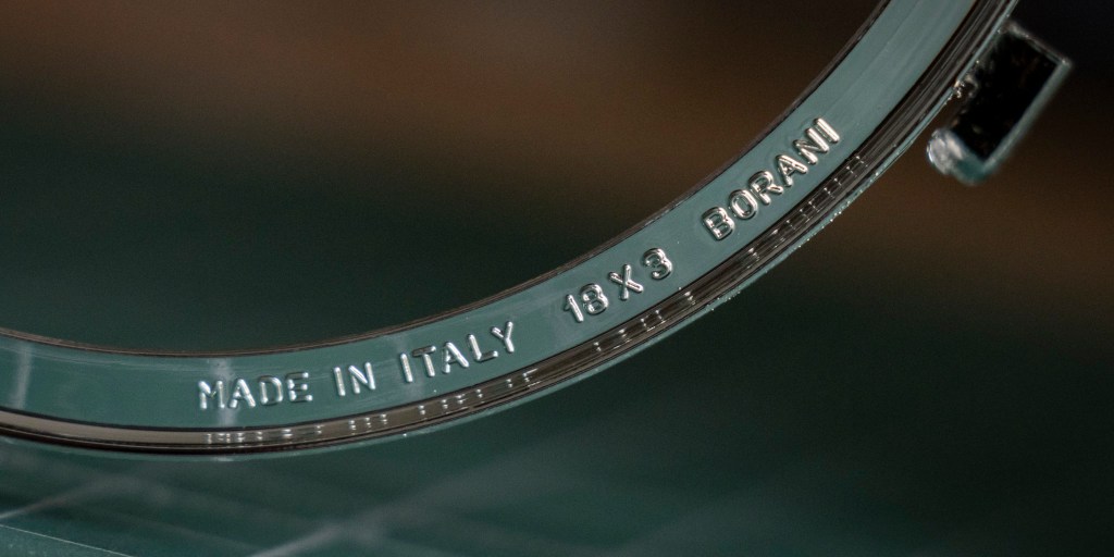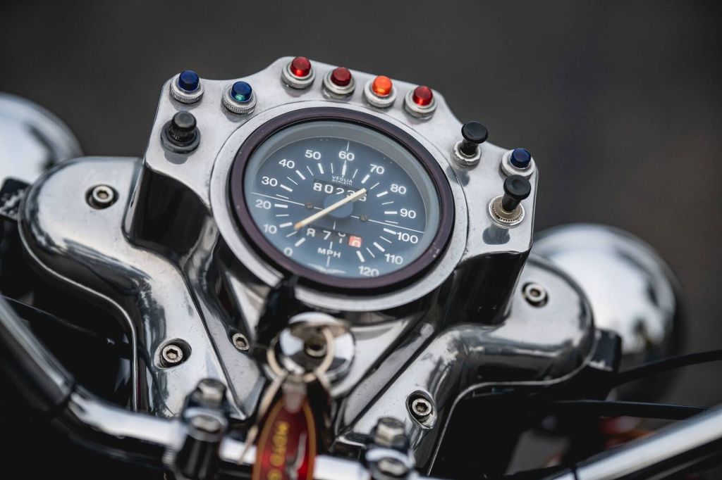 Not sure if this is intentional or a mistake, but “Borrani” with double Rs is a famous Italian wire wheel manufacturer who obviously made this bike’s two wheels. Another copyright omission?