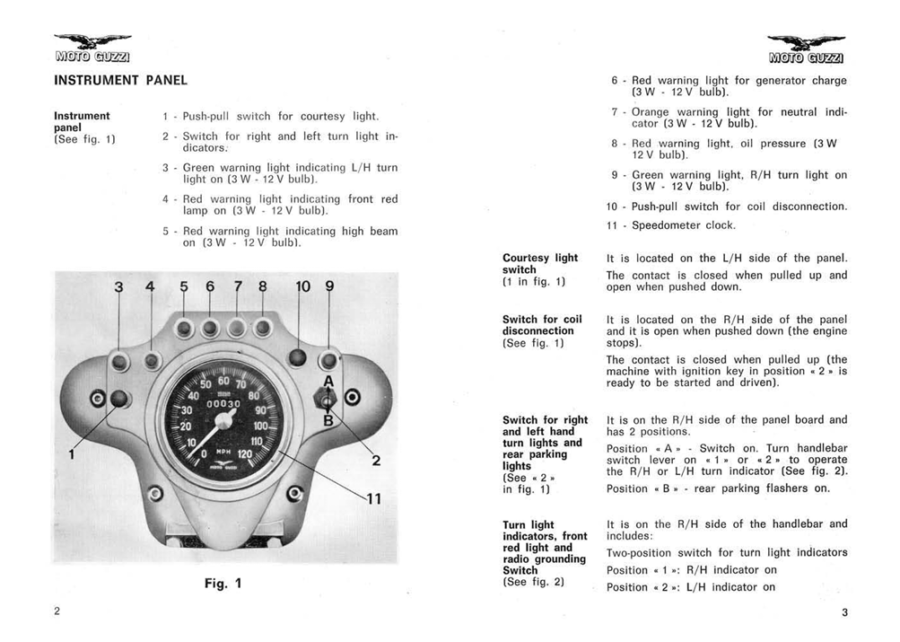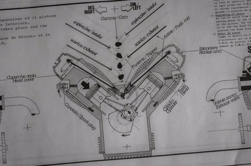 As for being educational, you really should read the next serval pages – a series of eight illustrations accompaied by text explainations, detailing the movements of the heart of this big Guzzi – the four stroke V-twin engine!