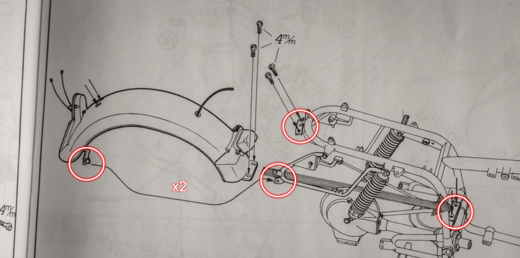 Fortunately, this is not the only place where the bulky rear fender is mounted, as you can see in the above illustration – The fender is securely screwed onto the central frame and is supported by the two saddle bag mounts on each side of the bike. In this case, the broken part can just be glued back to where it should be in the first place without worrying too much about the structural strength. Hopefully – you see, study the instruction manual is important!