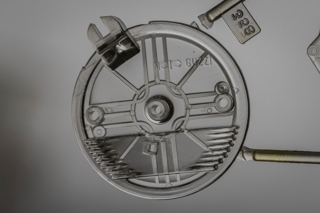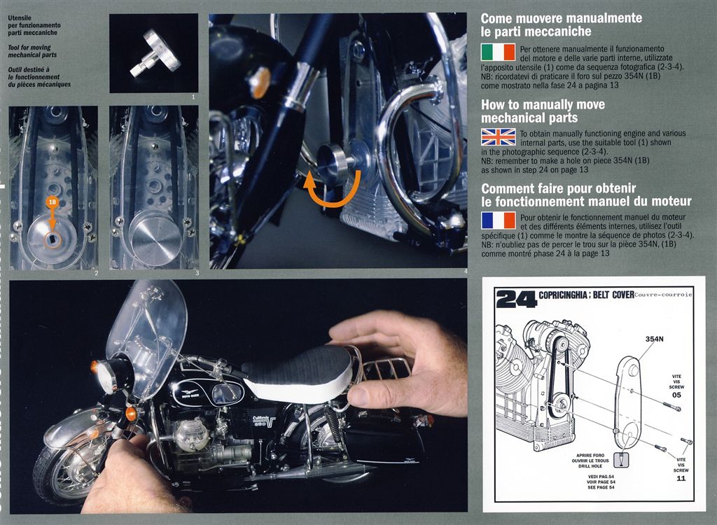 Following the bike assembly instructions is a tutorial on “how to make your big Guzzi more presentable.” You see, the kit offers so many transparent parts, so the internal mechanisms are visible – but what about the other components? What about the air filter, for example? The fuse box inside the headlight shell? No need to panic!