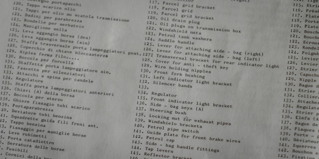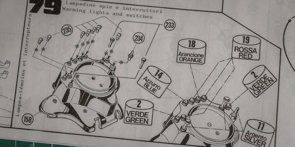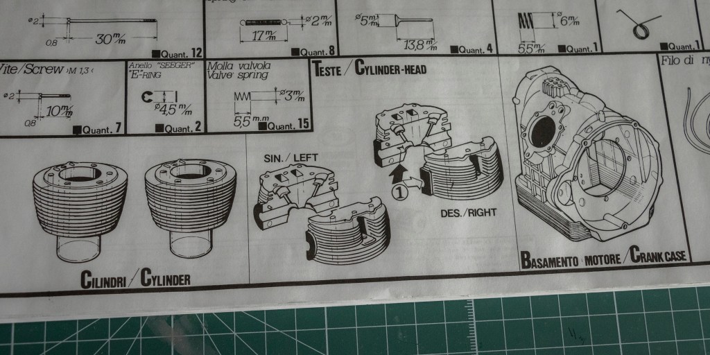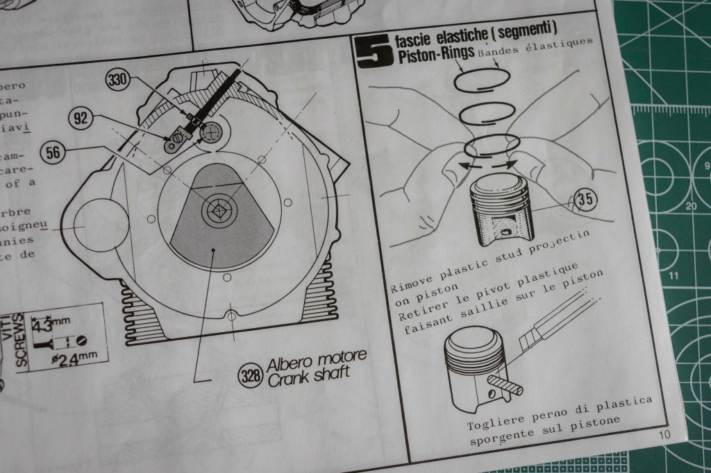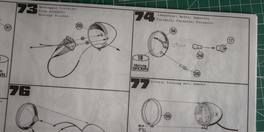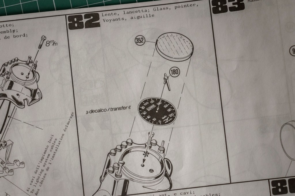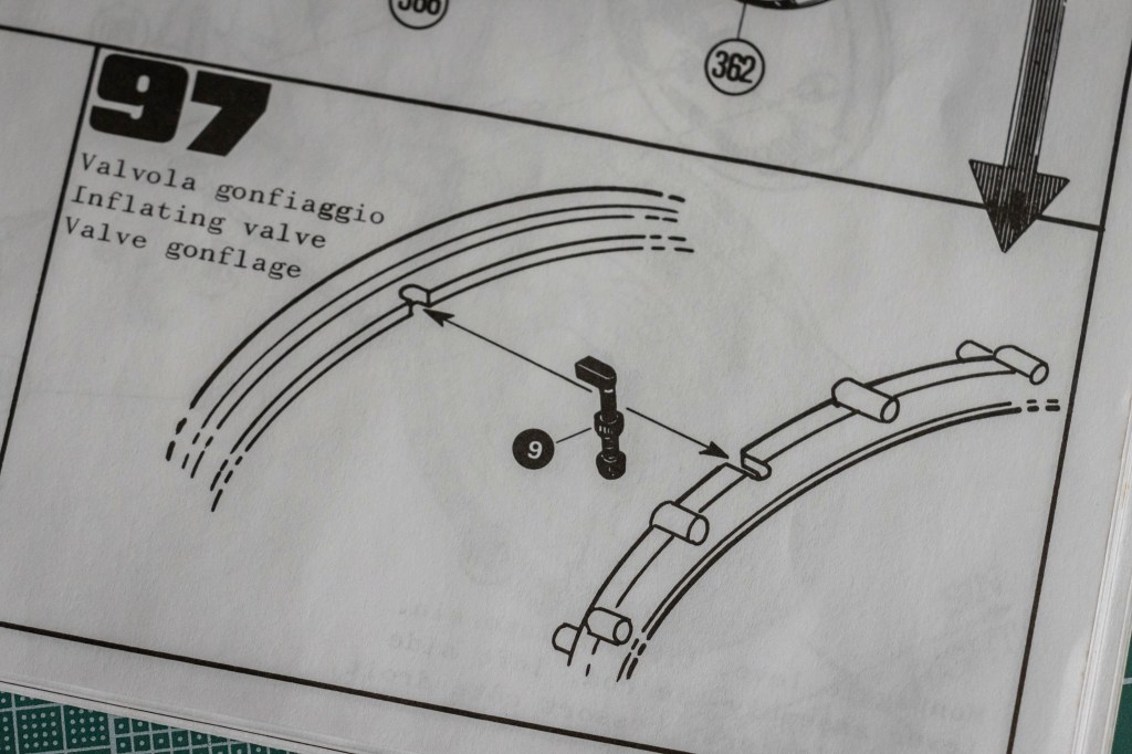 Not sure if this decal sheet was printed by Cartograf, but there is no visible yellowish after 20 years – a major problem when buying vintage kits. The same decal (different layout, of course) in Italeri’s 2013 re-release was printed by Zanchetti Buccinasco, a Milan-based printing company. Never heard of them before – interestingly, they have an unclaimed LinkedIn page. Also, not one, but two reflective sticker sets for the fuel tank are included, how considerate! You just know I’d mess one up, eh?