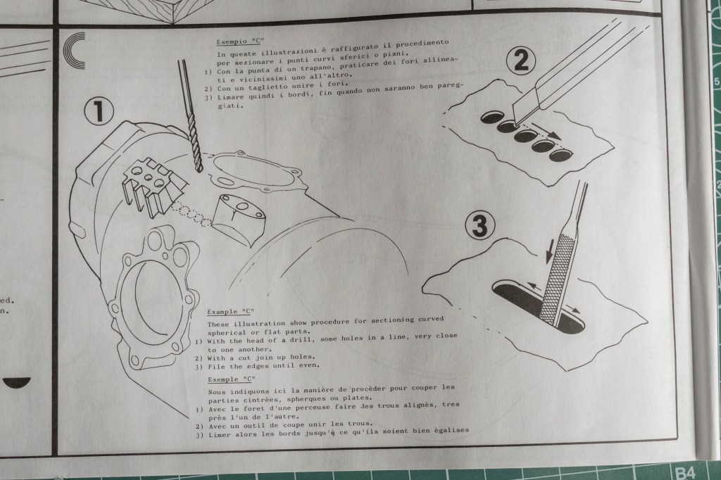 You gotta be imaginative to be a modeller. I’ve known all these methods over my many years of immersing in the scale model world. However, this is the first time I have seen the kit company actively encourage modellers to cut their precious kit (even 20 years ago) open to showcase what deserves to be seen and praised. This is a BOLD move. This is also educational. They not only teach you to cut and sand but also guide you on colours to paint the exposed surface. I see pure enthusiasm for scale modelling here. For experienced modellers only – Provini and Okabe must have been incredibly proud of their design!
