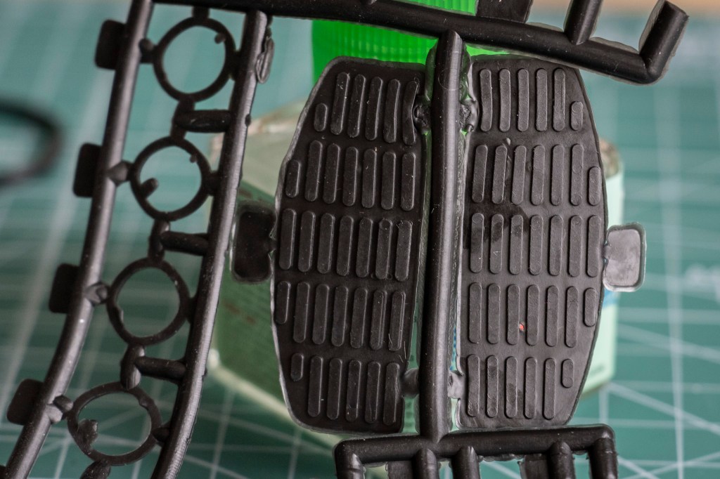 You’ve seen the tires in my Protar 1/24 Lancia LC2 (Ewwwww) – but the two big, round tires in the 1/6 Guzzi v-850 have a matching quality of Tamiya tires, if not better.